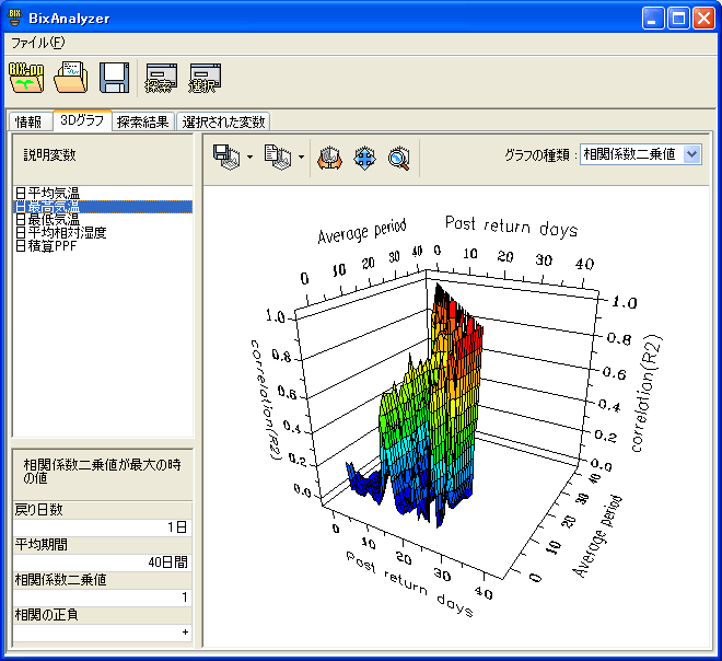 Program for searching relationship between plant production and various factors with any averaging periods (BixAnalyzer) It is a program that does the correlation analysis while changing the average period of production and each factor of every day described with the BIX-pp format. It is a version. MS.Net Framework is needed for execution with the environment of use. Please DOWNLOAD according to directions of installation. |