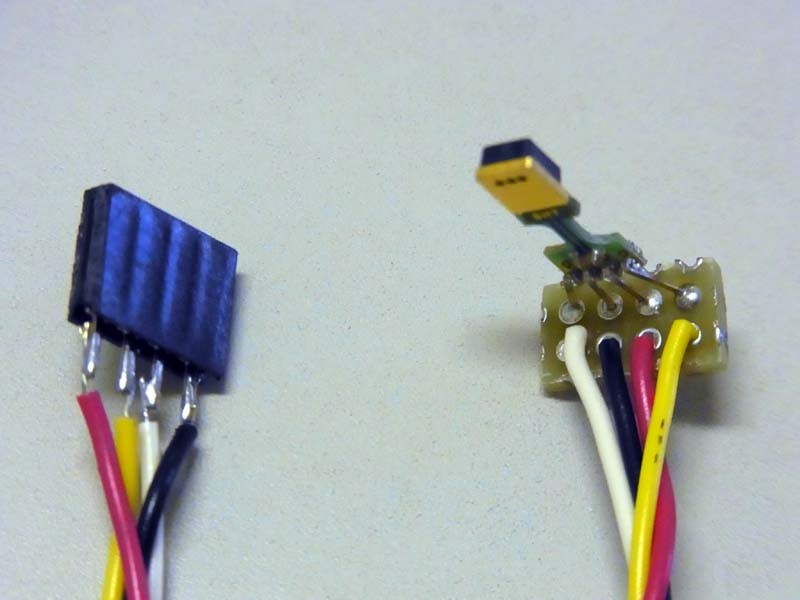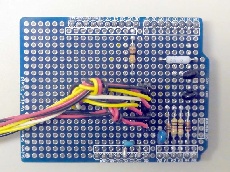 光量・温度・CO2センサに取り付けたビニール被覆電線をハンダメッキ加工して接続する。