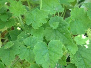 へんな増え方をするもう一つの仲間がベンケイソウ科の植物です。あの弁慶のように丈夫でなかなか枯れたりしないことから、弁慶草という名になったように、生命力の大変強い植物です。しかし、寒さに弱いものも少なくありません。左の写真は、セイロンベンケイ(Kalanchoe pinnata または Bryophyllum pinnatum)と呼ばれる、マダガスカルやアフリカに広く分布している植物です。別名、ハカラメ(葉から芽)と呼ばれるように、葉を切り取って、萎れない程度に湿り気を与えていると、右の写真の葉に、葉の縁の鋸歯(きょし)の間のくぼみから不定芽がでてきます。芽の出方が面白いのと、芽が出るが「めでたい」に通じるのとで、人気があります。ハワイ、沖縄、小笠原なと、温かい地方のお土産品として、袋詰にされた葉がよく売られています。寒さに当てさえしなければ、茎から落ちた葉がすぐに芽を出すため、温室などではすぐ強烈に増えて繁茂し、嫌われ者です。小笠原や沖縄などでは雑草化しています。大きくなると、主に早春に3-4cmくらいの長さの赤みかがった緑色の提灯のような感じの花を沢山咲かせます。それはそれでなかなかきれいですが、1mを超える草丈になってしまうことが多く、室内で鑑賞するには少し持て余し気味の感じです。 |