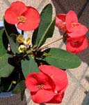 | ハナキリン(Euphorbia milii cvs.)よく、サボテンと一緒に売られていますが、トウダイグサ科の植物で、ポインセチアの仲間です。 | オーロラ(Sedum rubrotinctum cv."Aurora")多肉植物ですが、サボテンではありません。ベンケイソウ科の植物です。 | シバの女王の玉櫛(Pachypodium densiflorum)とげがあって、いかにもサボテンのようですが、違います。キョウチクトウ科の植物です。 | リトプス(Lithops sp.)これも、アフリカの砂漠に生える多肉植物ですが、サボテンではなく、ツルナ科(ザクロソウ科)の植物です。 |
